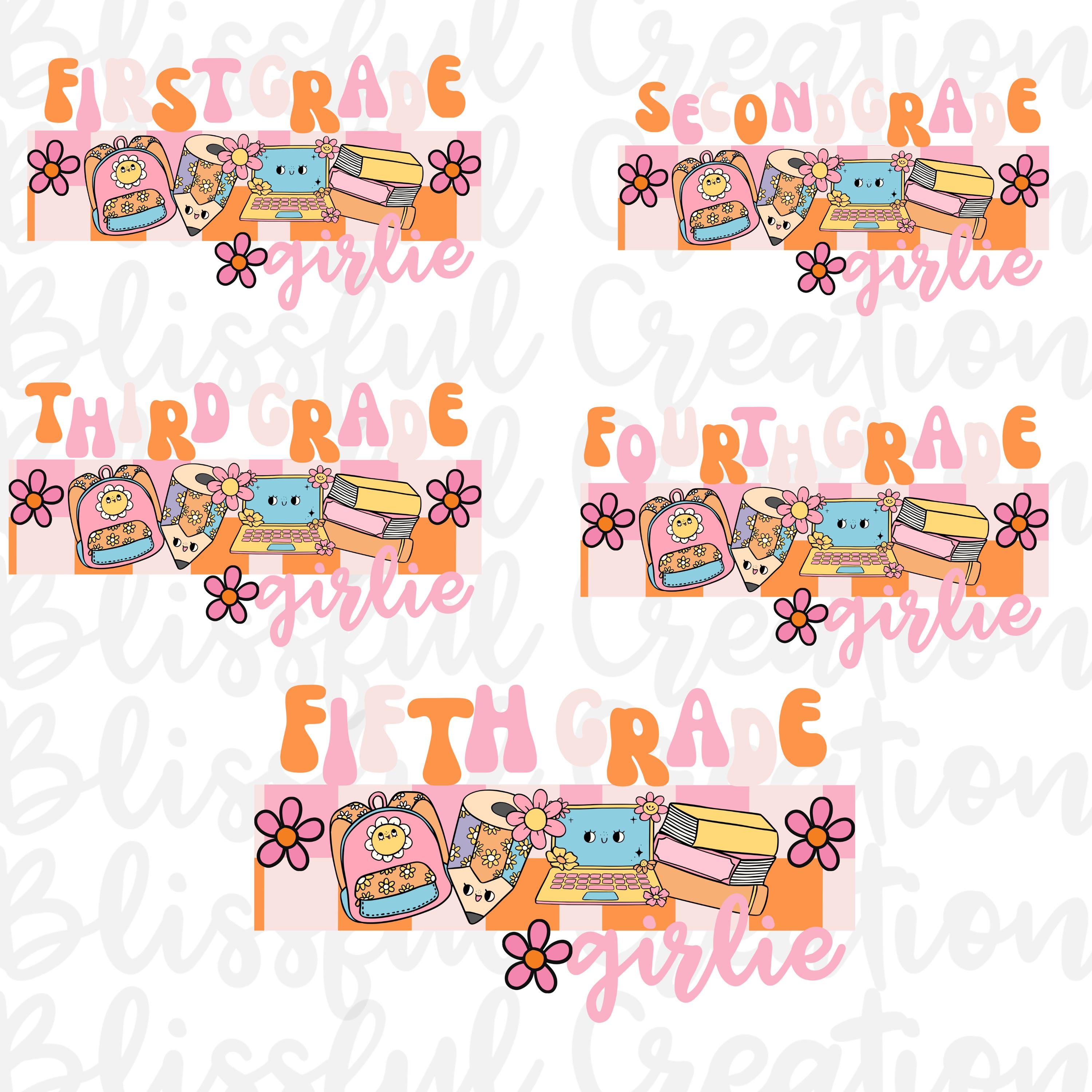 Retro Back To School PNG | Digital Download | Grade School Girlie | Sublimation Designs | First Day Of School