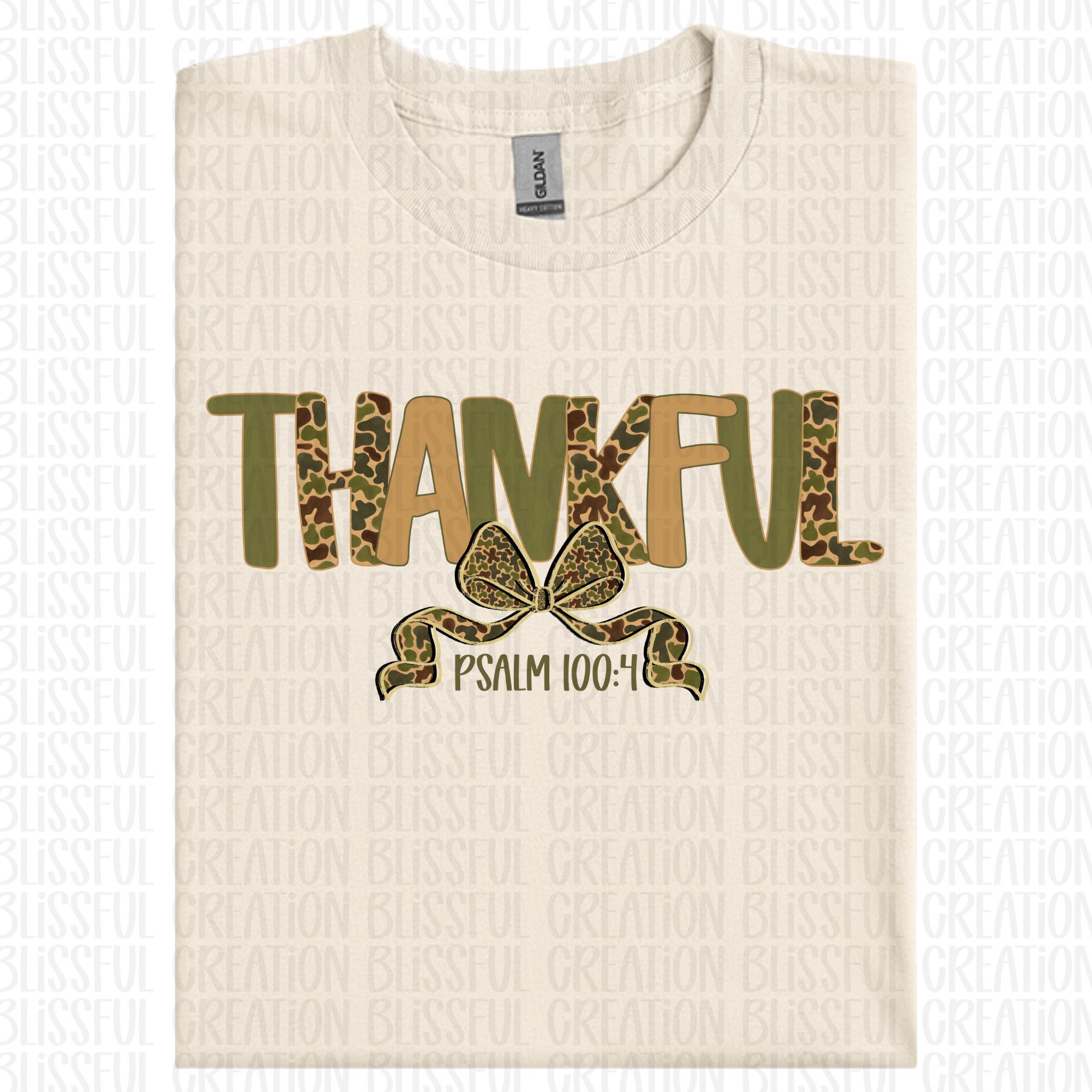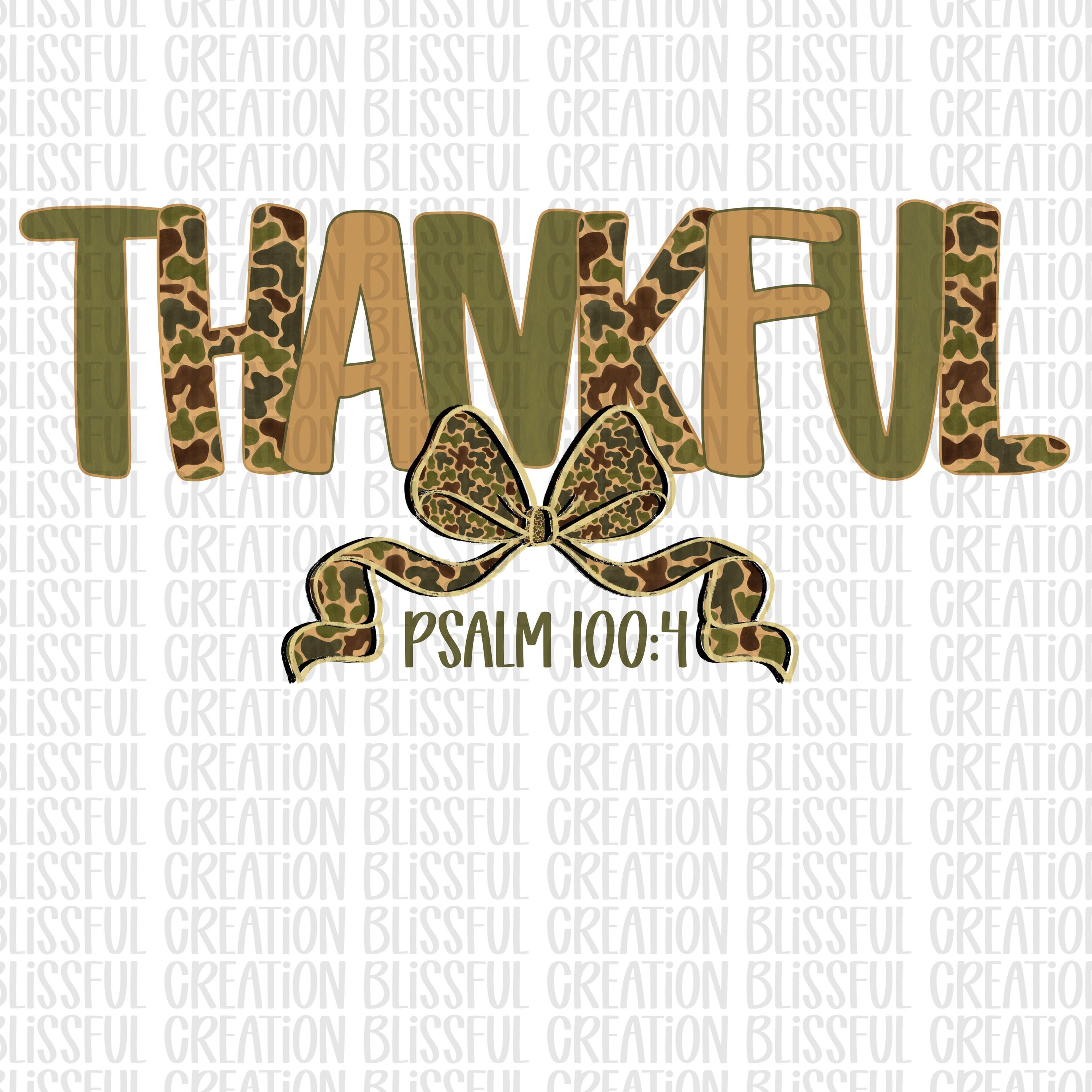 Olive Camo Thankful PNG | Psalm 100:4 | Christian PNG